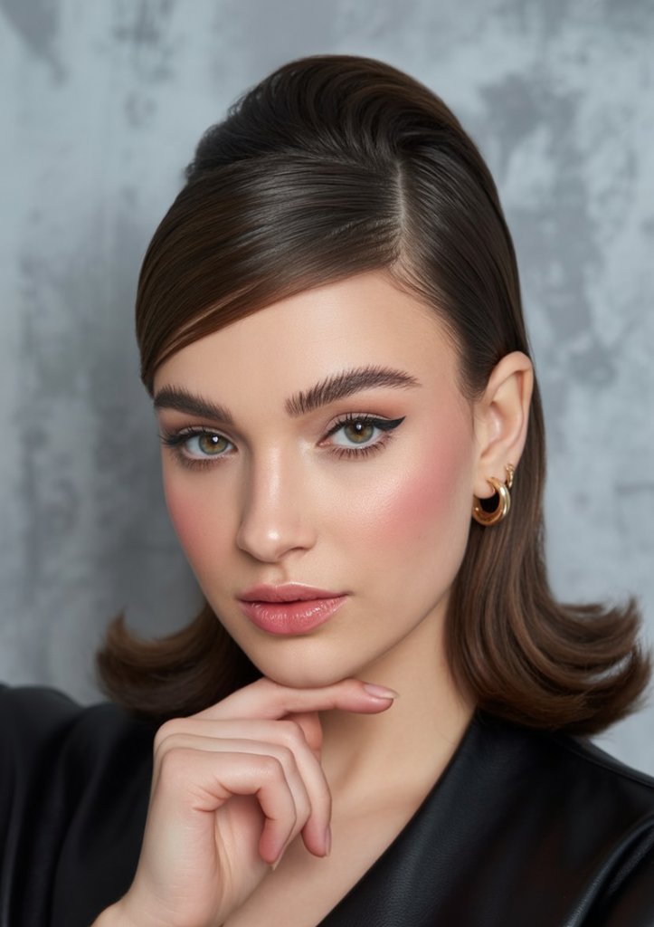 This low ponytail is soft, romantic, and undeniably chic. With face-framing strands and gentle waves tied low at the nape, it strikes the perfect balance between casual and elegant. It feels like the kind of hairstyle you’d wear to a garden wedding or a weekend brunch — timeless, feminine, and effortlessly pretty.