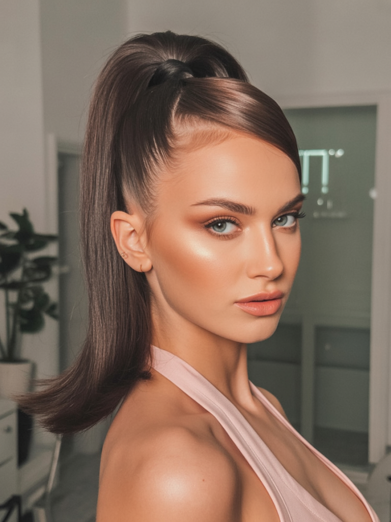 16. Sleek High Ponytail with Elegant Shine