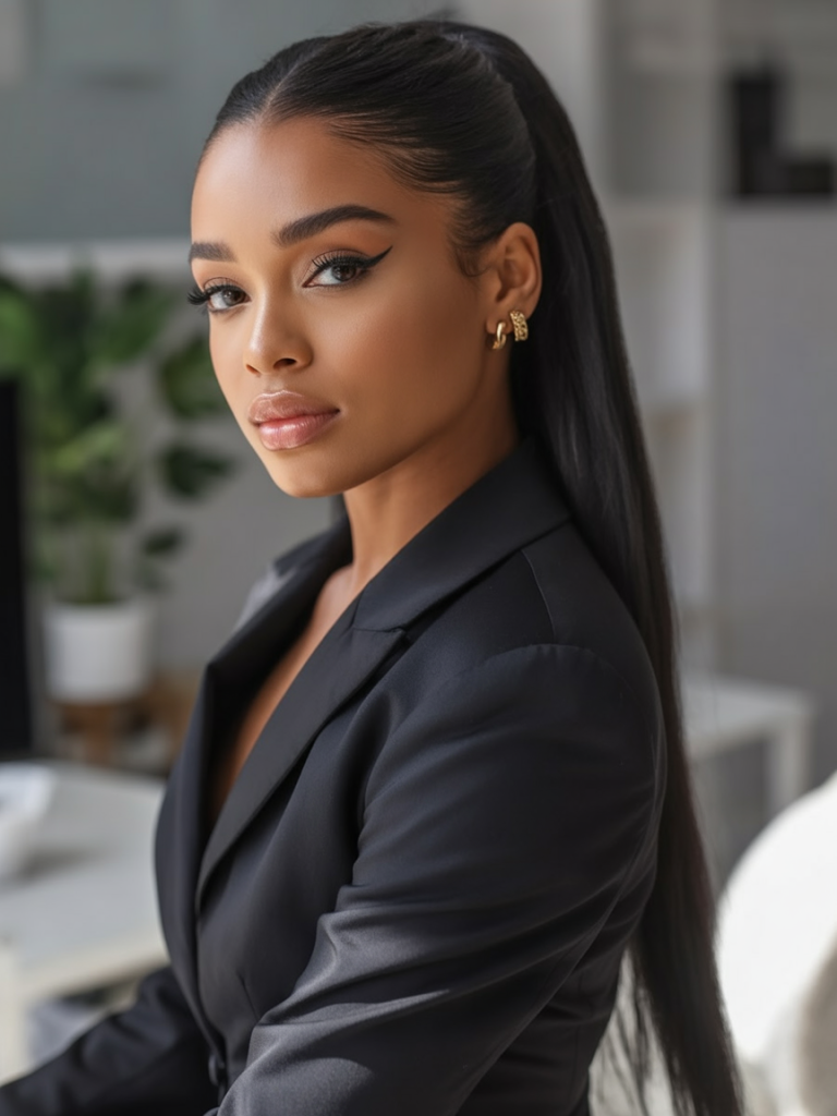 How About a Sleek Ponytail? There’s a certain strength in a sleek ponytail that cascades down effortlessly. With a smooth part and sleek finish, it’s both office-friendly and nighttime gorgeous. This hairstyle exudes a confidence that’s unspoken, the kind that propels you to stand up tall without having to say a thing.