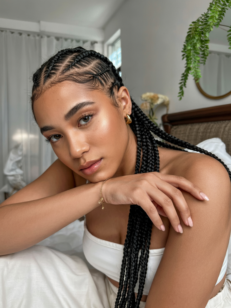 Straight-back braids are a classic of all times, clean, structured and stylishly powerful. They exude a smooth and assertive aura, and are thus suitable to any environment, whether on casual days or in workplaces.