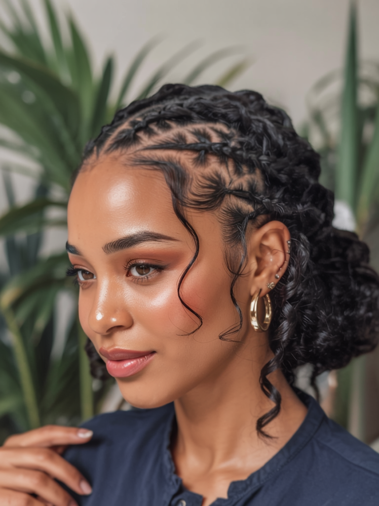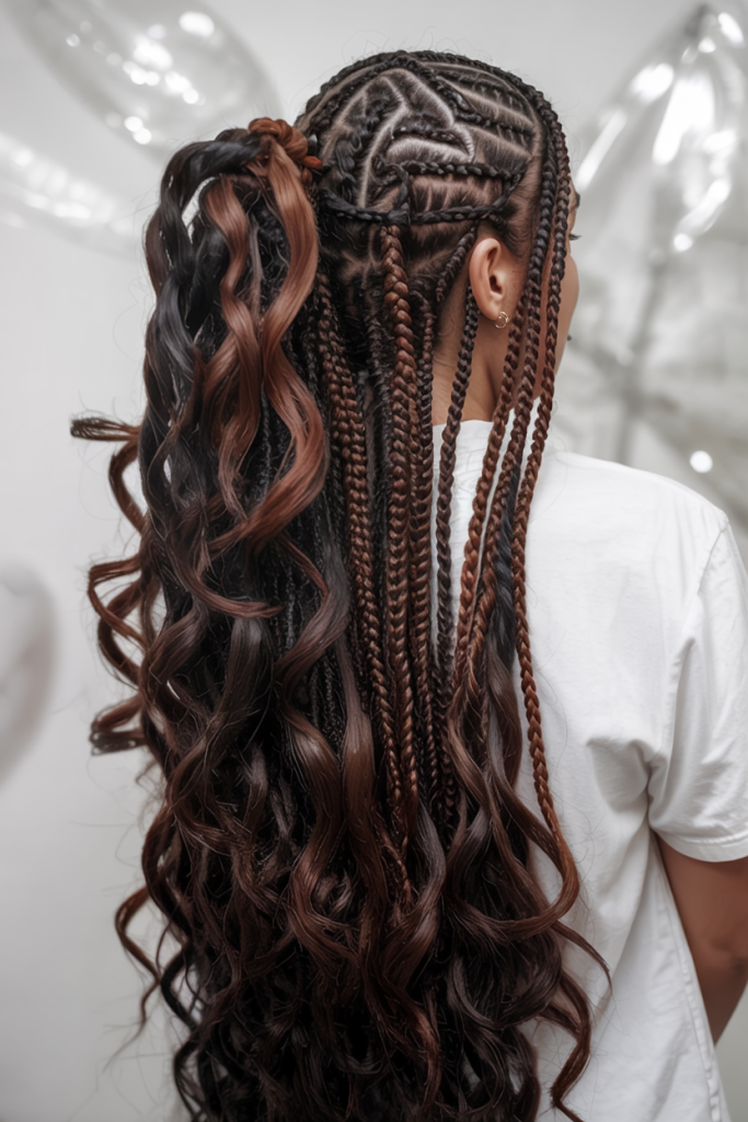 It is ideal in black women who desire protection styling yet still like to show off curls. The mixture secures natural black hair and gives the freedom of style. The curls are added to it when it comes to a night out or special occasions in 2025 to make it softer and more playful compared to braids long styles.