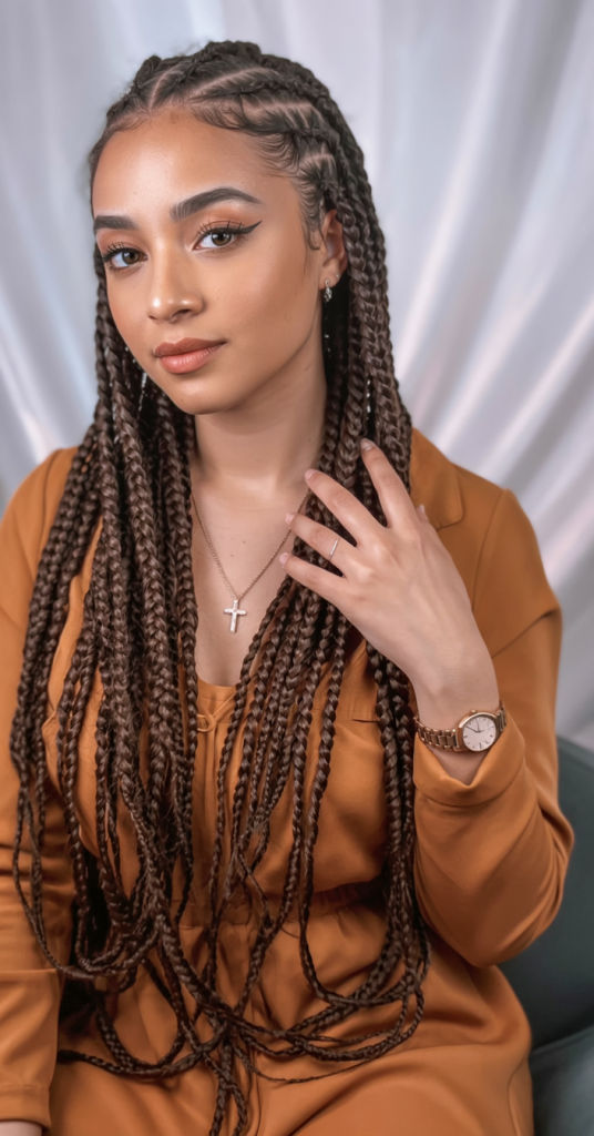 These braids are great with natural black hair and 4c textures, and they keep the hair and hair protection. The chunkiness is a bold addition that can be fresh and modern in 2025 compared to thinner braids long styles.