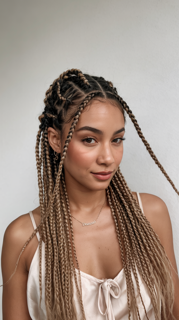 This appearance is particularly complimentary when it is done on natural black hair since the contrast in colors emphasizes the structure of the braids. It also works well when you are in need of color but not ready to bleach out your own hair. The ombre effect creates depth and advantage over traditional braids curly or straight, which makes this one of the most memorable protective hairstyles in 2025.