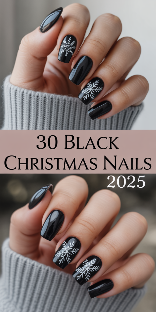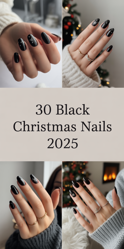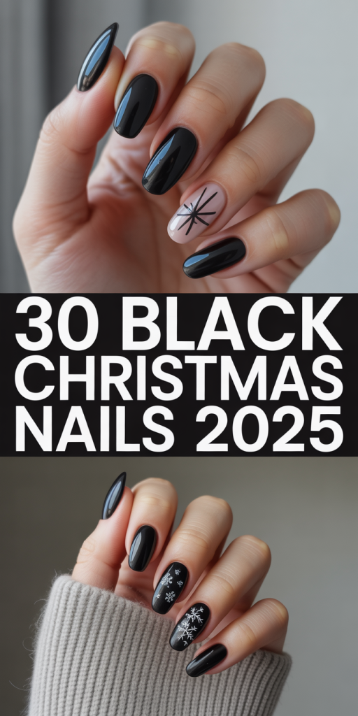 30 Black Christmas Nails 2025 – Stylish Winter Designs