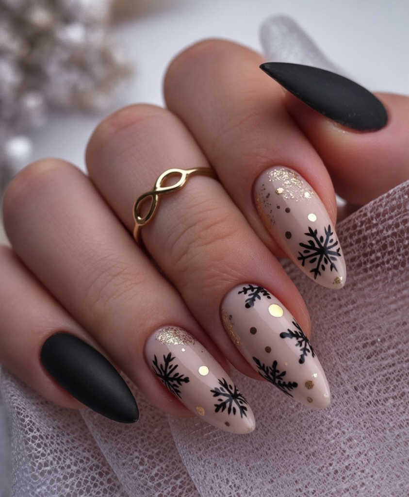 6. Black and Nude Snowflake Contrast