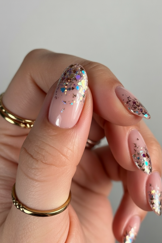 7. Glitter-Tipped Nude Glam
