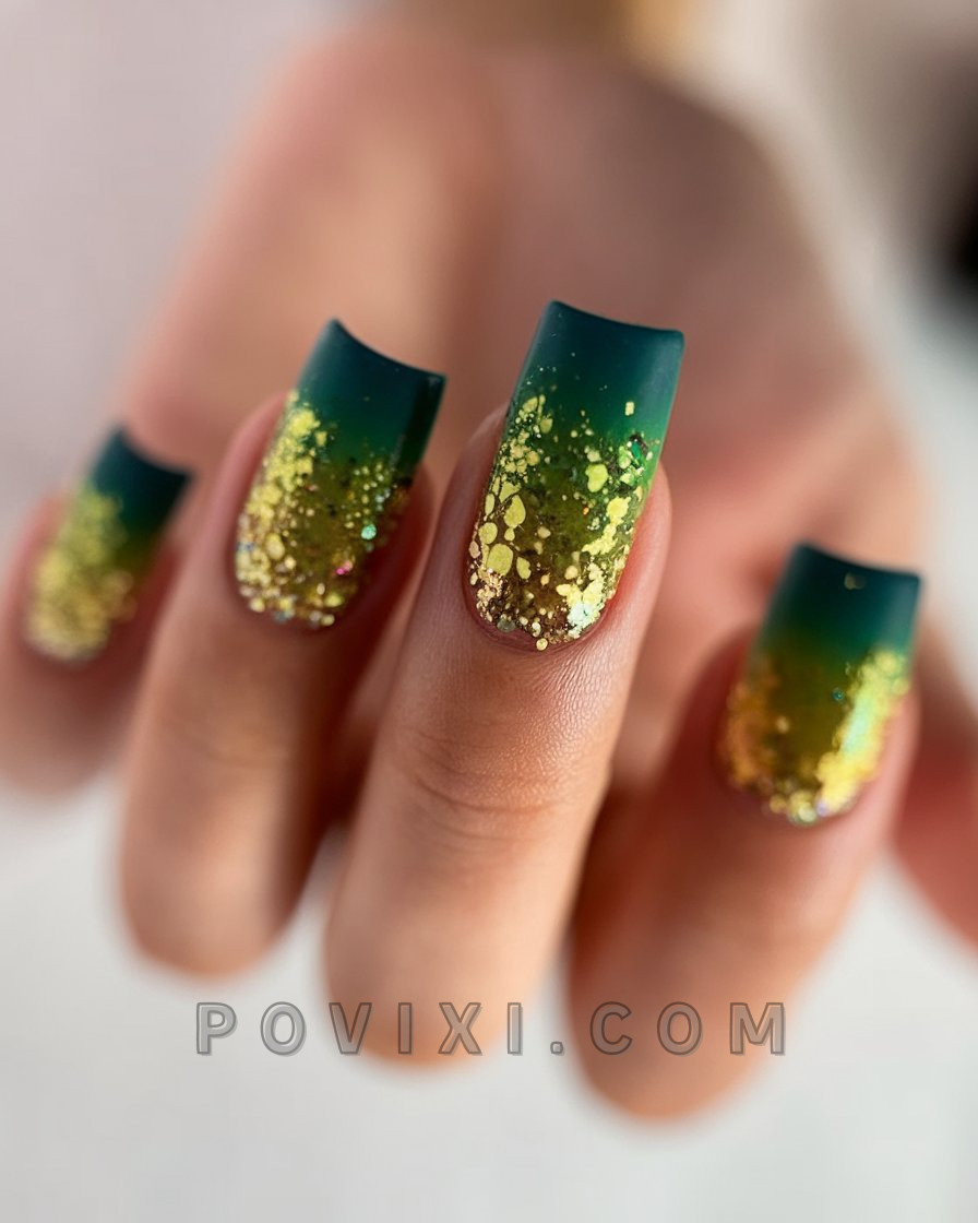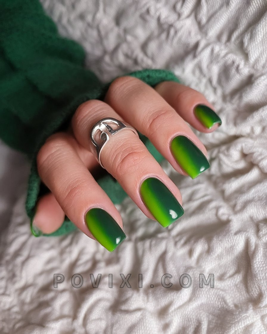 A unique gradient shift transforms deep forest green to light lime green in a contemporary square shape for those seeking fresh nail art. The ideal blending of colors creates a contemporary digital art look for these nails. If you want to stay fashionable in 2025 with a chic and eye-catching nail design, this is the style for you.