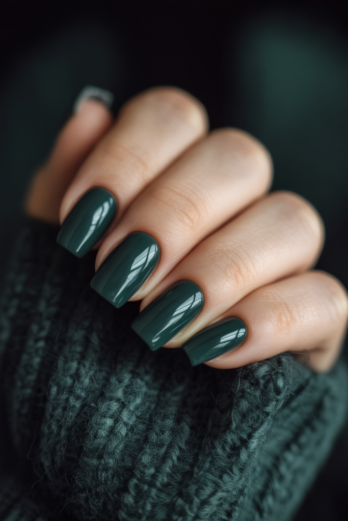 There’s something undeniably chic about a solid dark green manicure. This simple glossy finish is bold yet elegant, making it a versatile choice that works for both everyday wear and holiday events. It’s proof that sometimes less really is more.