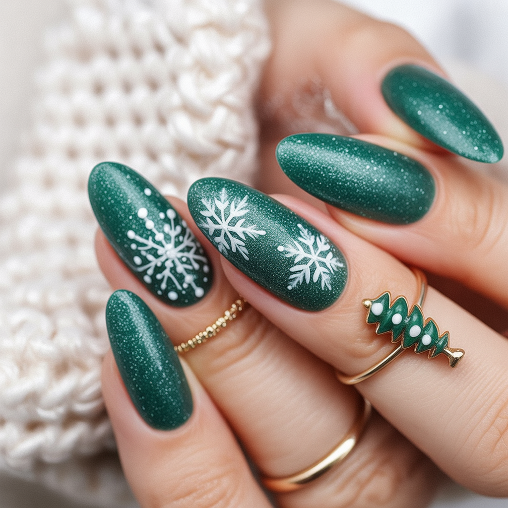 Somehow, green nails in winter give that much sought-after vibe of laidback chic and festive cheer. Deep emeralds that carry the richness of pine tree shadows or soft sage shades that offer a zingy twist on classic looks-green is the color to don when the temperature hits low. Putting on a bit of glitter, snowflake detail, or some minimalist matte look-a manicure that feels cozy yet polished. These green winter nail ideas for 2025-2026 showcase how this hue can get playful, get all classy, or get outright brash- definitely one to keep in your seasonal style collection.