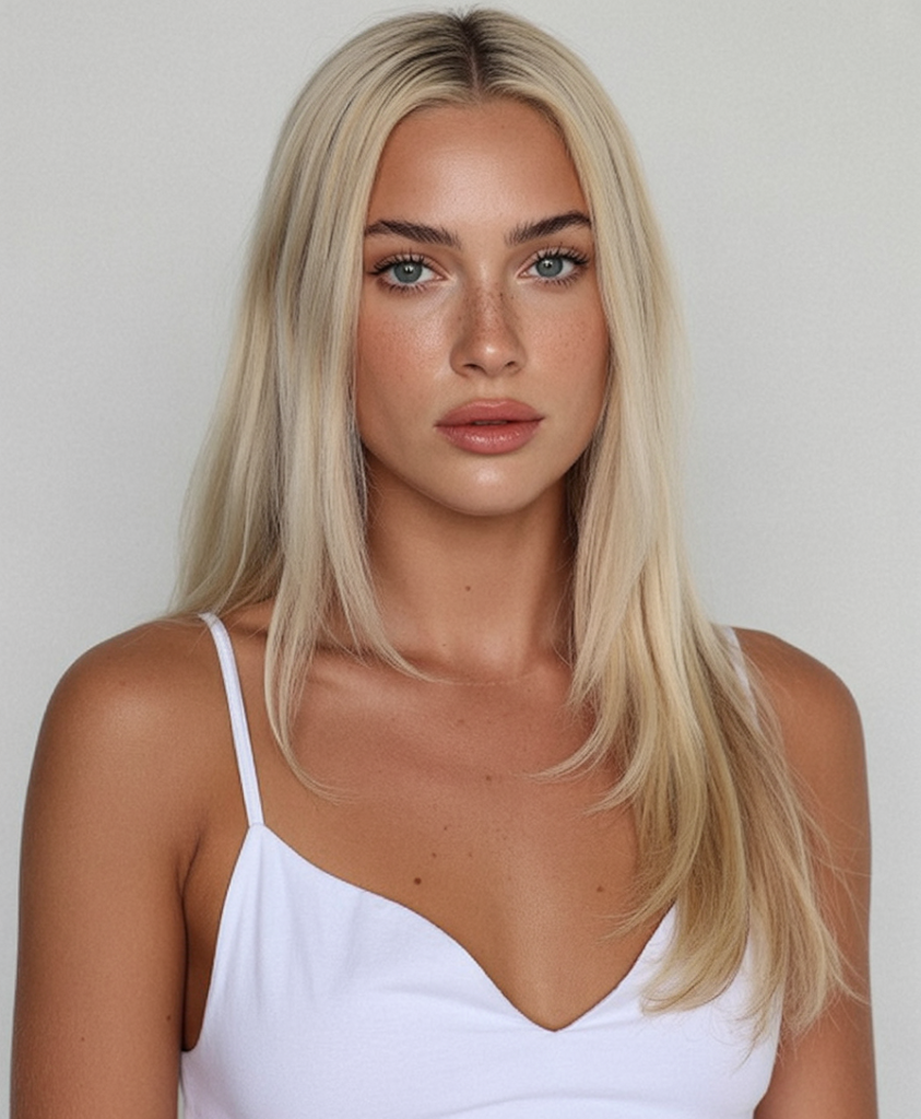 Nothing says chic like long platinum blonde hair styled with clean, minimal layers. The middle part gives it symmetry, while the light-reflecting strands feel like the ultimate style statement. It’s modern and striking and pairs beautifully with a simple makeup look—letting the hair be the star.