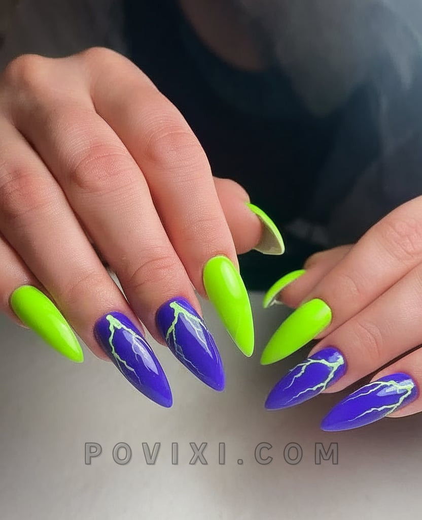 A single manicure set combines neon and metallic finishes to create the ultimate manicure experience for bright girl styles. The design uses a solid glossy pink for most nails, but one nail features a silver chrome base complemented by lime green and hot pink energetic swirls. The elliptical nail design combines comfort with eye-catching impact. The nails are specially designed for people who like to stand out and prefer bold and excessive styles. Women who prefer bold looks should wear sequined mini dresses and dramatic eyes and mirrored sunglasses. The unique combination of artistic nails and luxurious design lines makes these concepts essential for passionate 2025 women who love fashion trends.