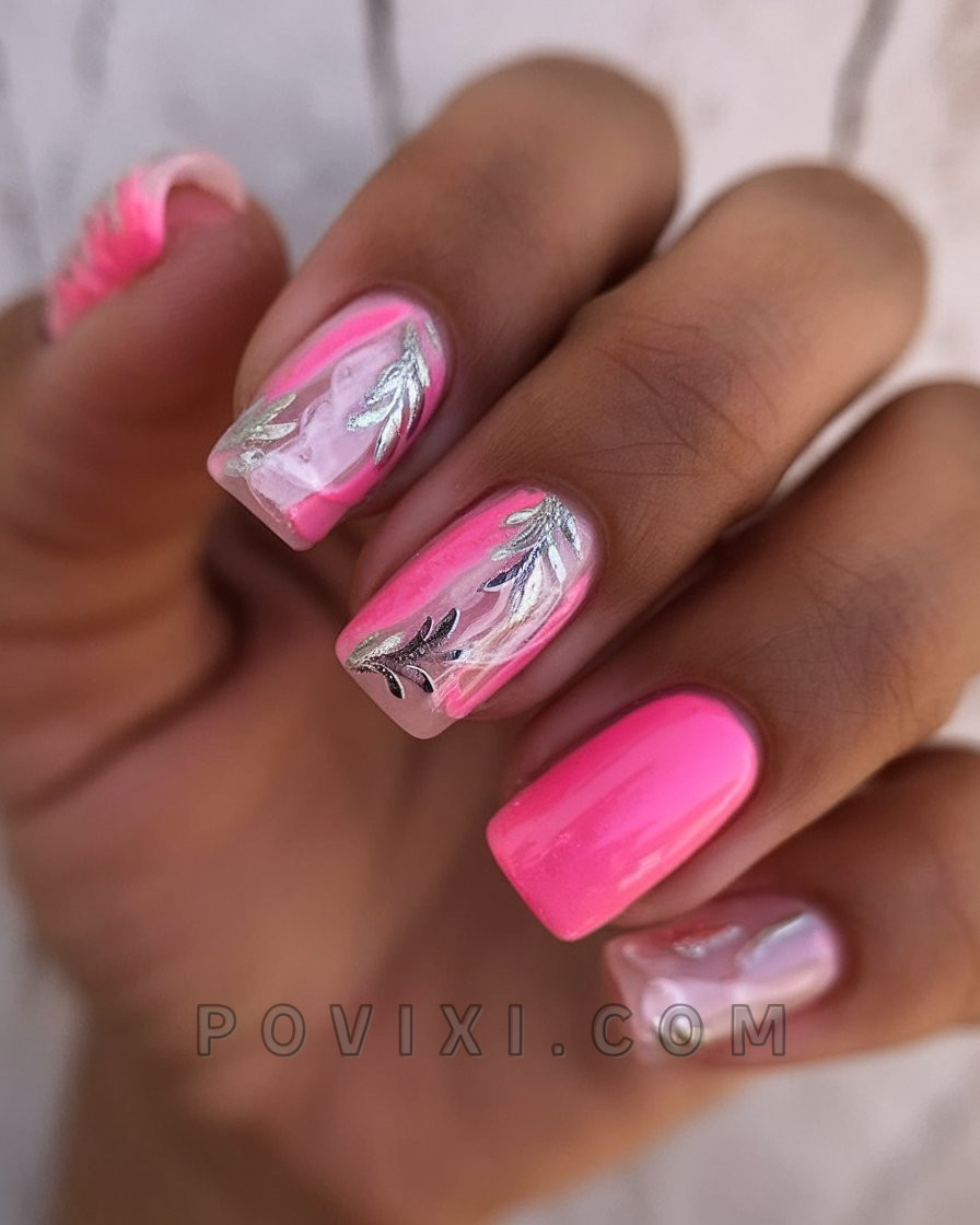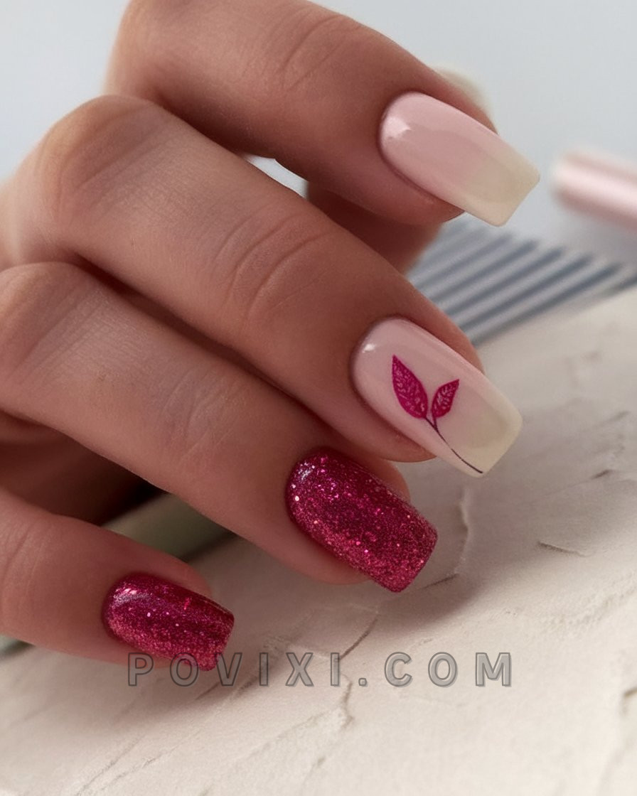 This summer combination of sparkling raspberry nail polish with minimalist leaf art and creamy pink nails makes a vibrant statement of 2025 fun. Short square nails provide a look that is both contemporary and easy to manage. Lonche nails are an essential festival look, especially when paired with metal pieces or bohemian designs.