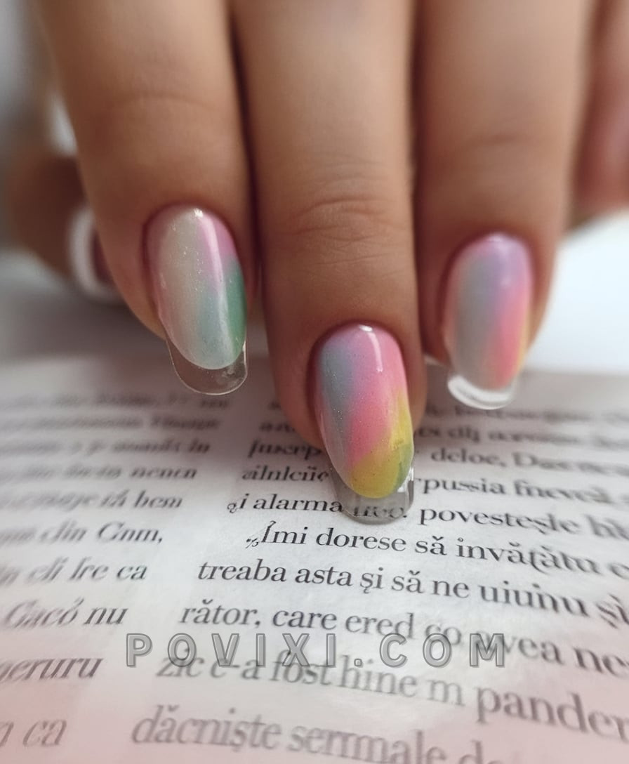 This manicure captures the essence of summer with its translucent sorbet base that incorporates pastel colors from pink to blue to green to yellow. The manicure design brings a sunny mood with its depiction of dissolving rainbow popsicles and watercolor skies along with poolside lighting. The manicure features soft pastel shades that delicately glow under the light. Natural nails match the preferences of people who value delicate and clean styles that keep their love of nail art beautifully visible. A summer beach look is created by wearing pastel linen dresses with pearl earrings and soft beach waves. This nail design offers a casual, sophisticated look that works well for casual events as well as relaxed everyday wear.