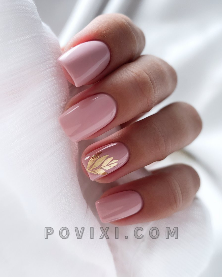 Light dusty pink gel square nails with a gold feather accent create an organic and stylish design that works well throughout the week as well as on the weekend. Those looking for a stylish change of style for the summer can achieve it with these minimalist designs without losing their polished look. The gold shimmer component of this design gives the nails just the right amount of shine to catch the sunlight. The white or beige floating dresses would create a lasting elegant look when paired with these nail designs.