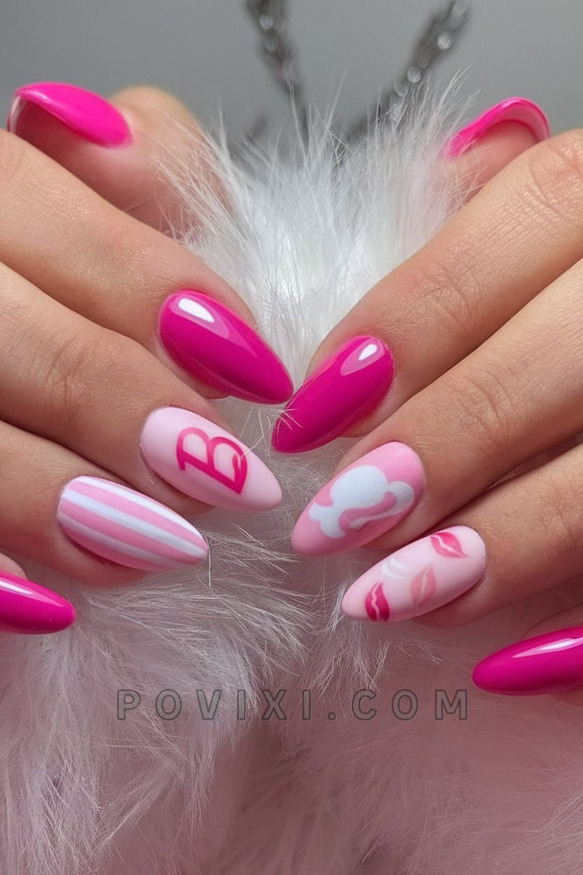 All the elements that characterize the Cute 2025 aesthetic are present in this set. The nail art combination features matte and shiny textures, candy stripes and lip prints, and cloud effects that showcase oval and almond B logo shapes. The wide range of nail possibilities gives individuals multiple ways to express their personality in a fun way. The vibrant candy-like nail designs are best paired with either pink leather jackets or graphic tees paired with jeans.