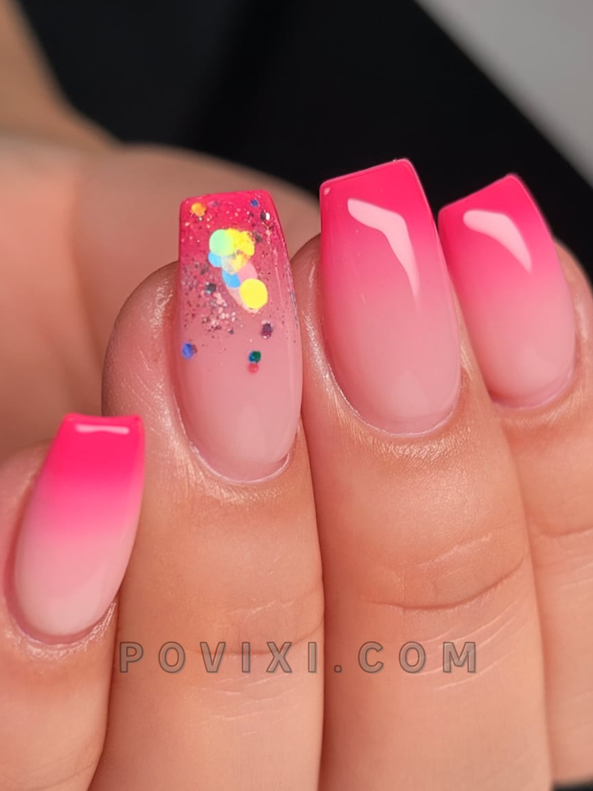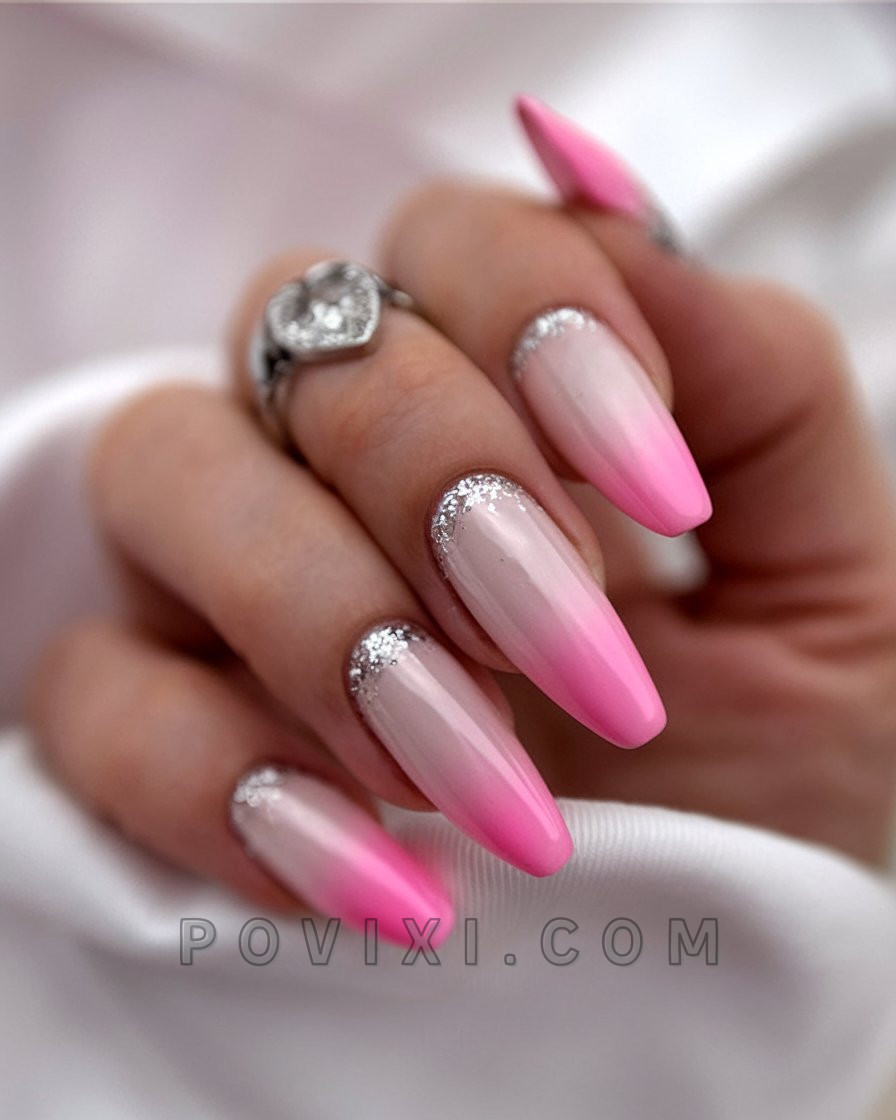 Glam Pink Ombre with Glitter Cuticle Highlights