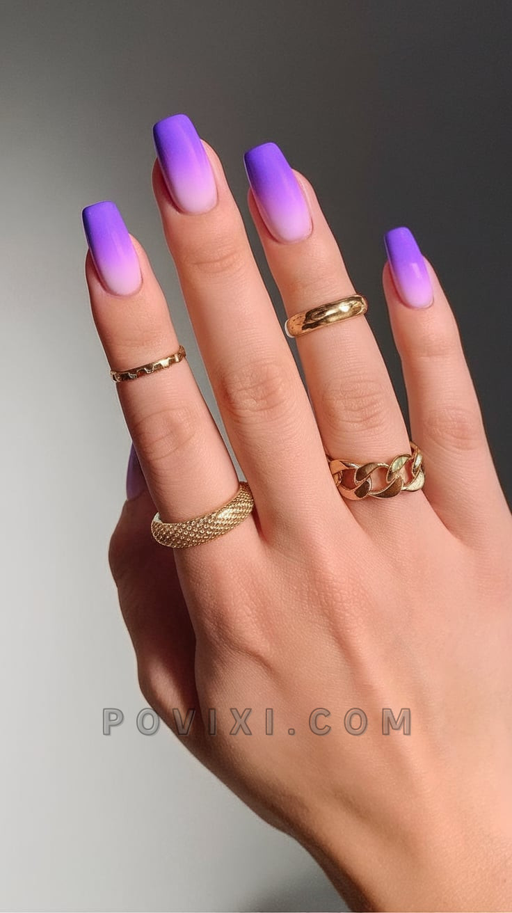 The short square ombre design presents a delicate color transition from deep purple to pale white with subtle effects while maintaining a soft appearance. Summer 2025 brings this understated yet fashionable manicure option as an excellent choice between formal and casual outfits. You can wear this manicure with a white linen ensemble or pair it with a neat blazer as it perfectly blends professional style with delightful colors. Any smooth manicure will look fantastic with a gel nail application for extended wear throughout the season.