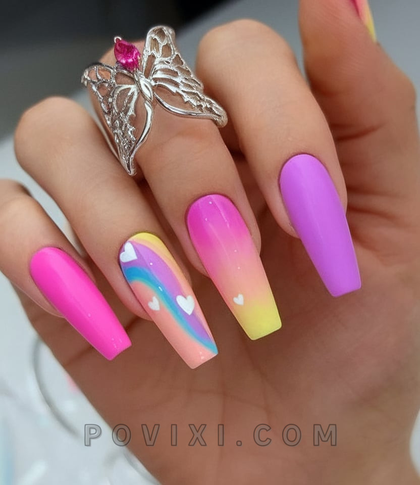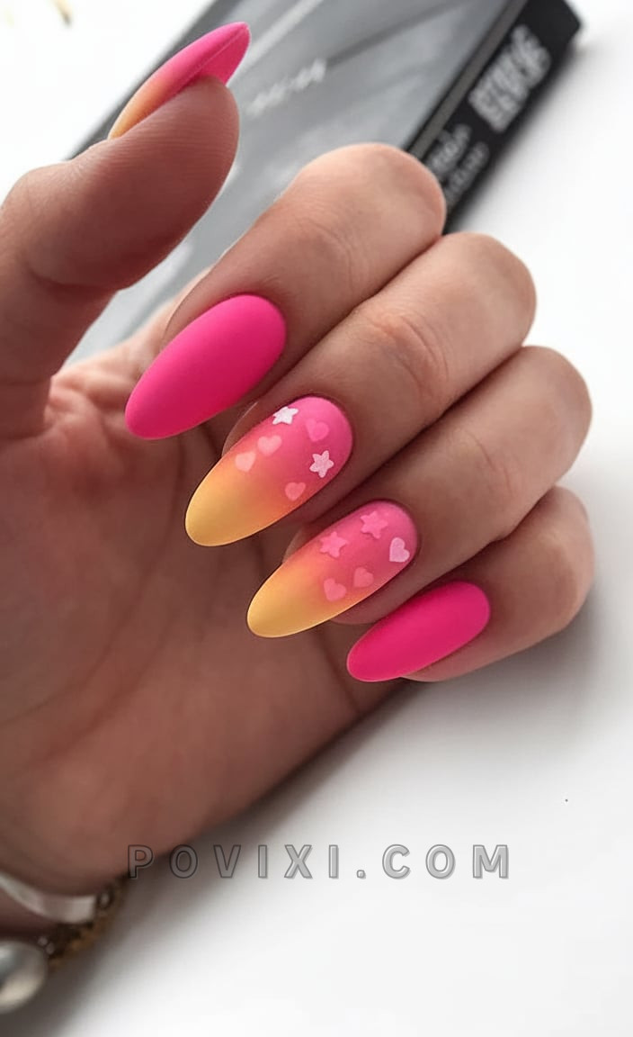Vibrant Pink to Yellow Matte Fade with Hearts