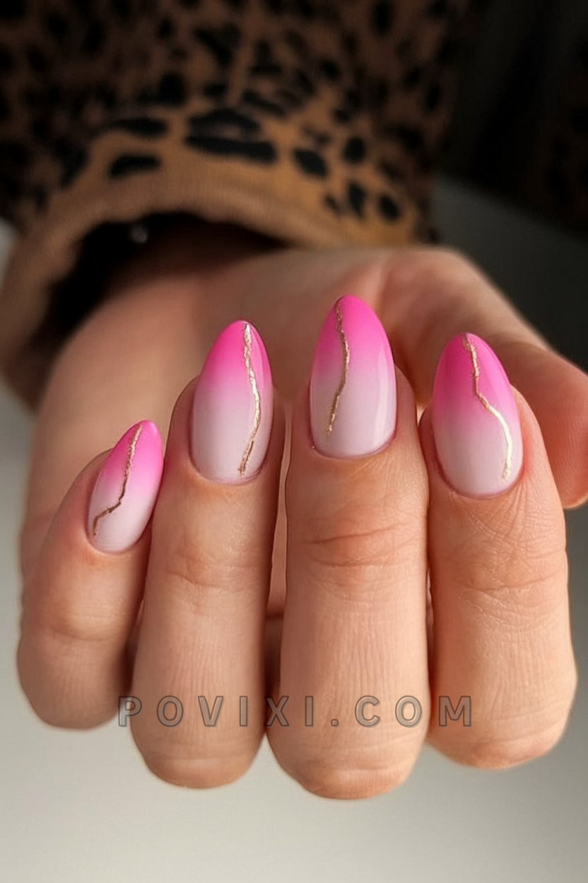 Delicate Pink Ombre with Golden Kintsugi Lines