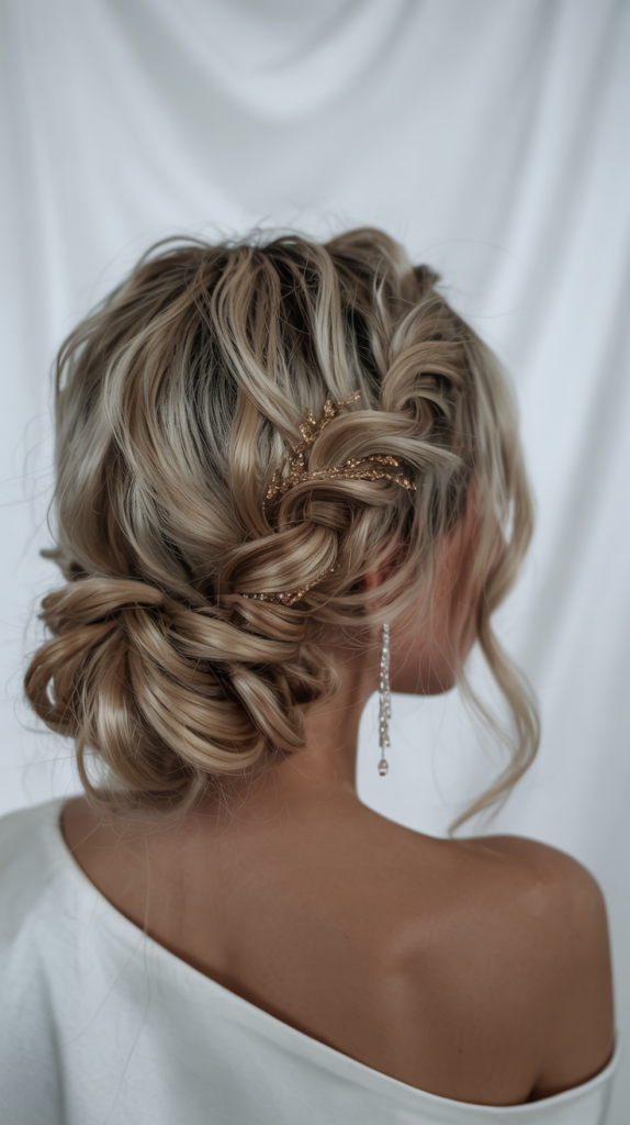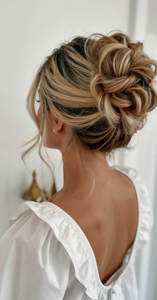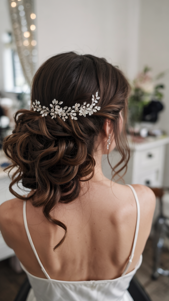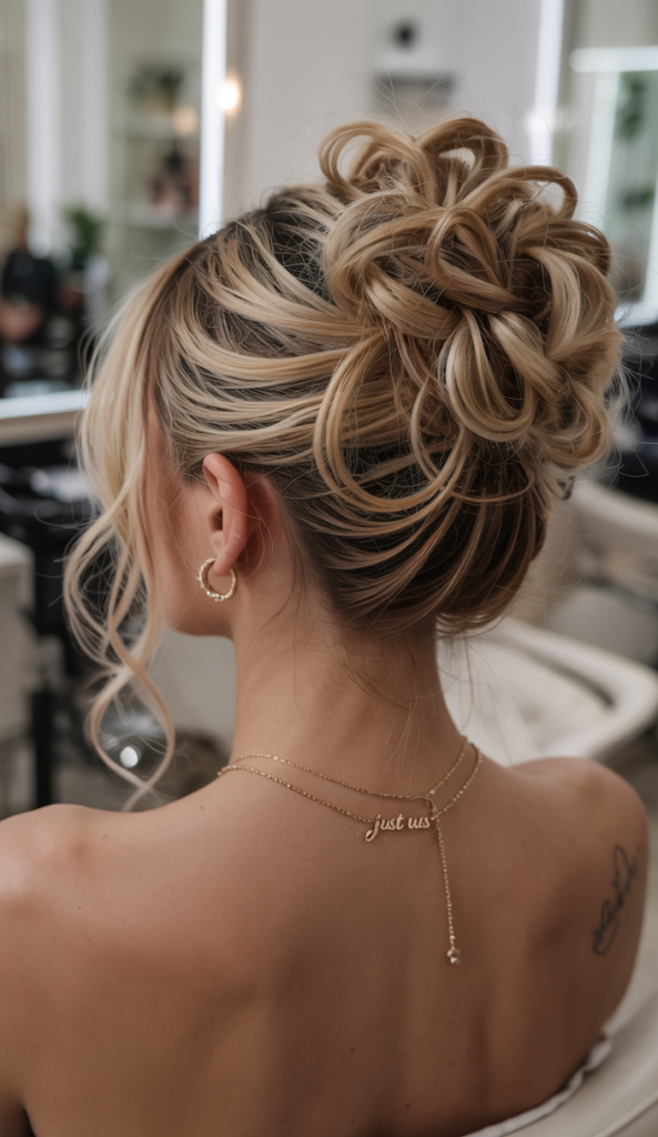 This hairstyle prevails in 2025 fashion most notably on brides seeking to create a statement updo that is not too serious. It suits most types of medium length or long hair well and is best suited to a variety of textures: it will suit anyone with strong natural curls as well as those with delicately wavy hair. To make sure the curls last throughout the night of dancing, use a volumizing mousse prior to styling to add body to hair.