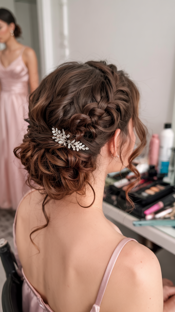 Being among the best wedding hairstyles in 2025, it best works on long and medium length hair. Because the braids will offer a secure grip, it can make a fantastic choice on brides who want an elegant look that will stay intact through each toast and dance.