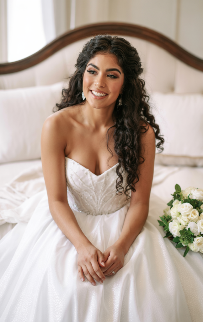 A curly haired brides favorite wedding hairstyles 2025, it is gorgeous on medium and longer hair. Spray a light-hold spray and curl-enhancing cream to make the texture stay bouncy and defined throughout the day.