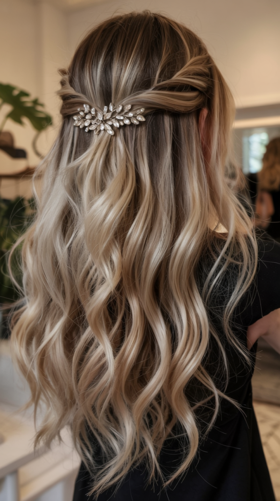 4. Elaborate Half Up Half Down with Crystal Hairclips