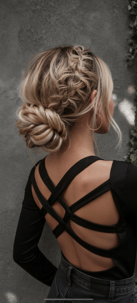 The hairstyle is ideal in long hair or medium hair and is used mostly in formal occasions as a wedding hairstyles 2025 favorite. It pairs beautifully with backless gowns and statement earrings.