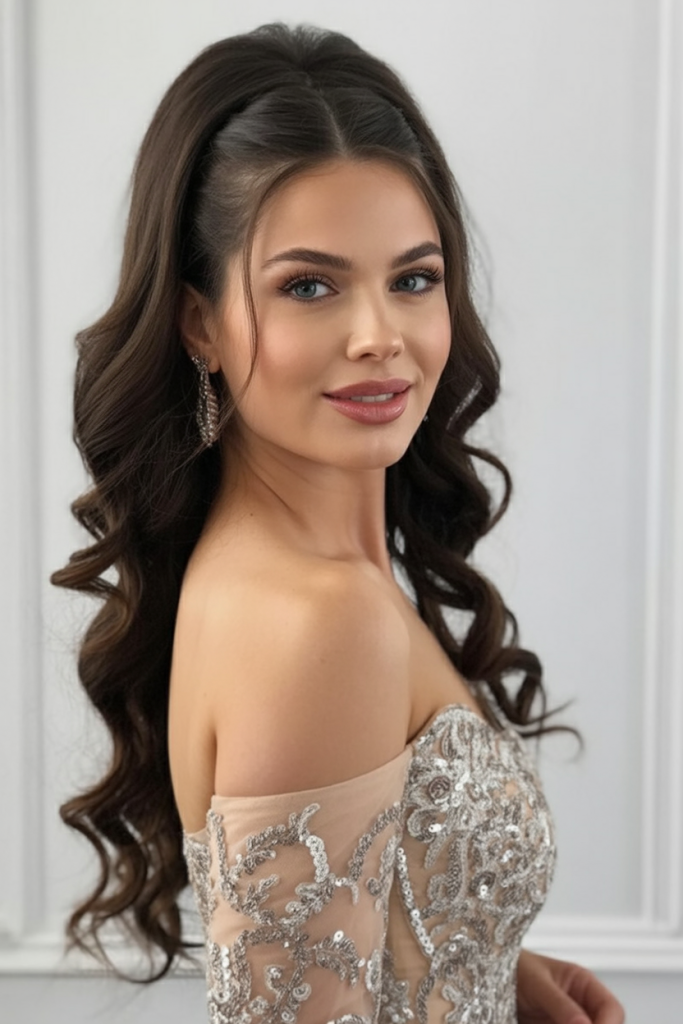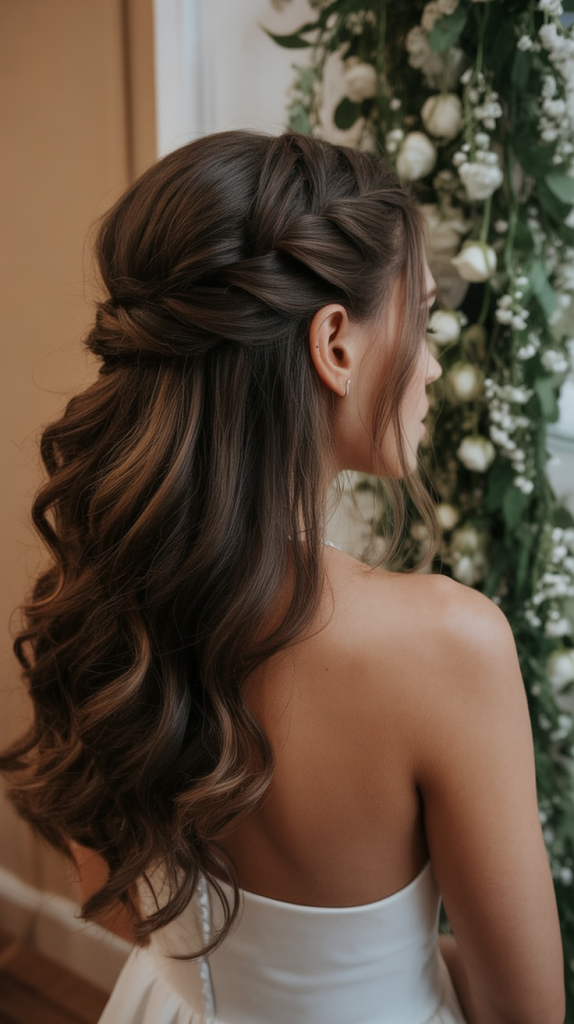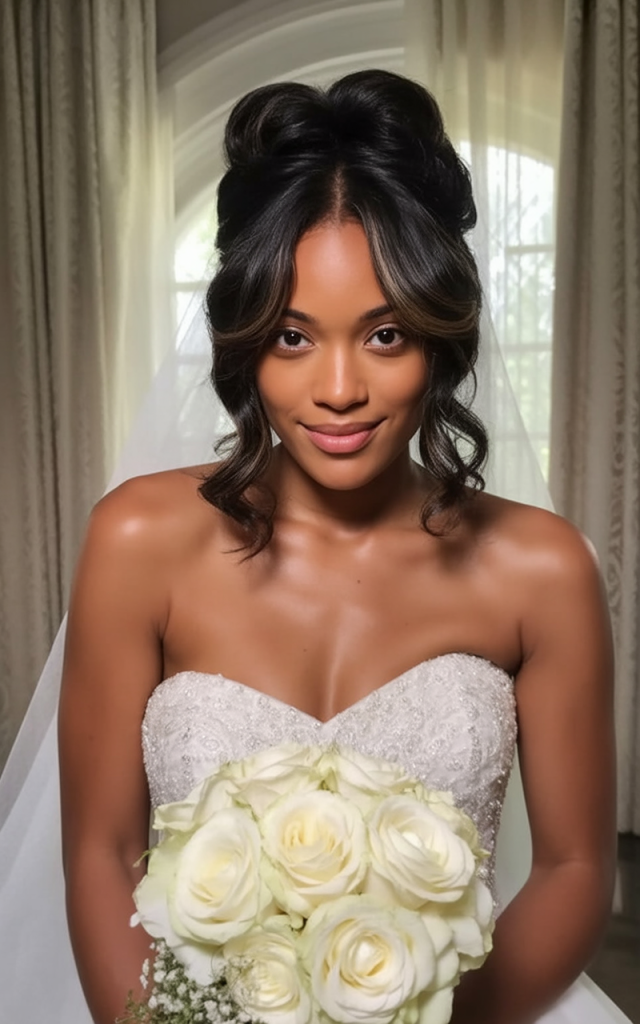 The edgy quality that this half-up bun has has absolutely got it right for 2026 trends. This look has both class and attitude, from its sleek appearance at the front to its waves cascading down. This look will surely impress the type of bride that still wants to look fashionable without conforming to traditional norms.