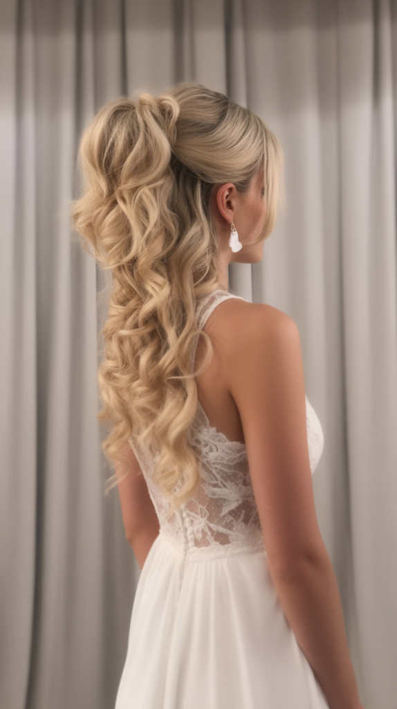 Romantic, playful, and full of motion, this curly ponytail is definitely a wedding hairstyle that 2026 brides will love. The loose curls dripping down her back give her a free-spirited look that still manages to look absolutely perfect for the wedding. This hairstyle is elegant from every perspective, combined with a healthy amount of volume that adds drama without looking too much.