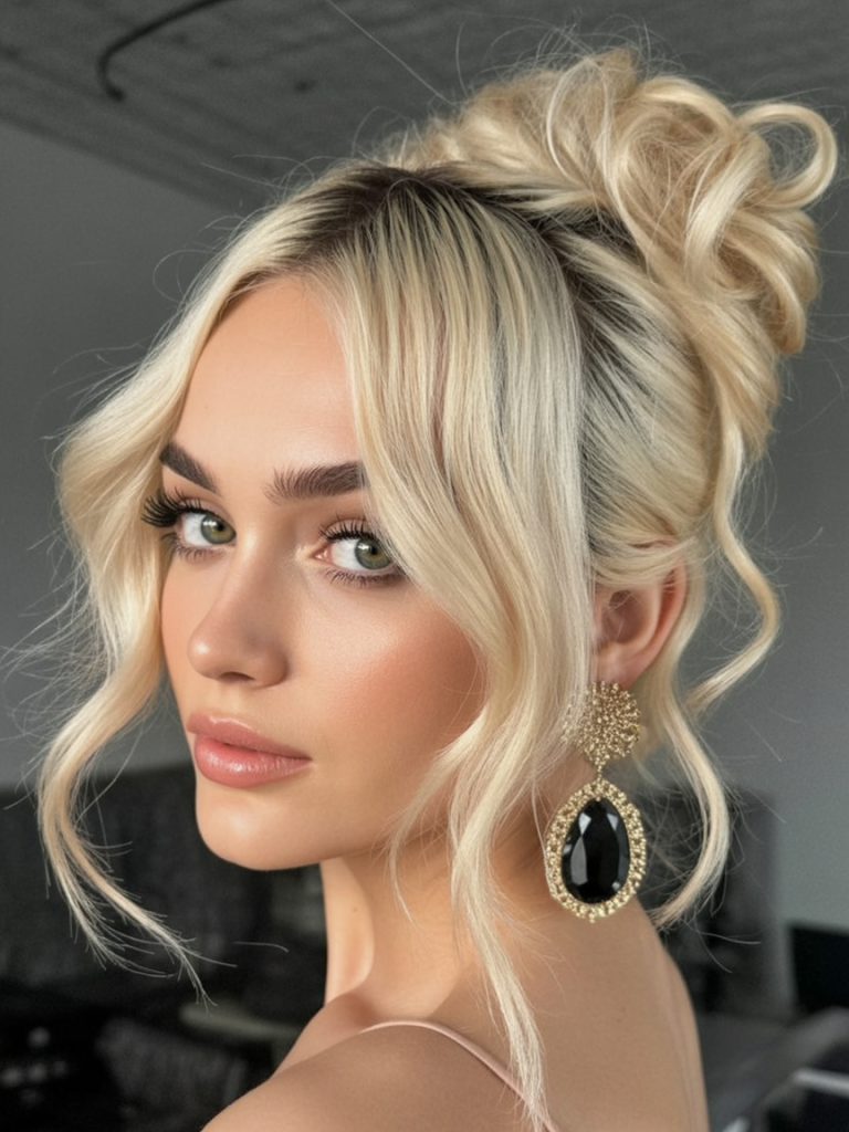 This hairstyle is infinitely glamorous, and it has that elegant, sophisticated look, yet it has softness from the face-framing strands that add a hint of modernity to it. This hairstyle exudes an air of class without diminishing the personality that comes from it.