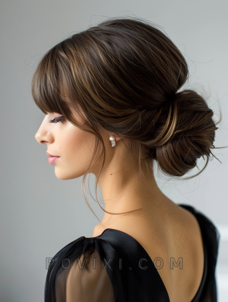 31 Stunning Ideas for Low Bun with Bangs Hairstyles: From Curly and Messy to Formal Wedding Hair