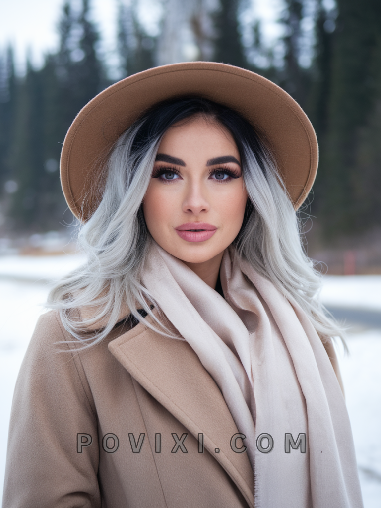 For a bold and striking contrast, platinum blonde with dark roots remains a go-to for those wanting to keep maintenance low while making a high-fashion statement. This color pattern works perfectly for a night out or any winter event where you want to shine. Best suited for oval or heart-shaped faces, this look pairs beautifully with cool-toned blue or green eyes, offering a sleek, modern edge.