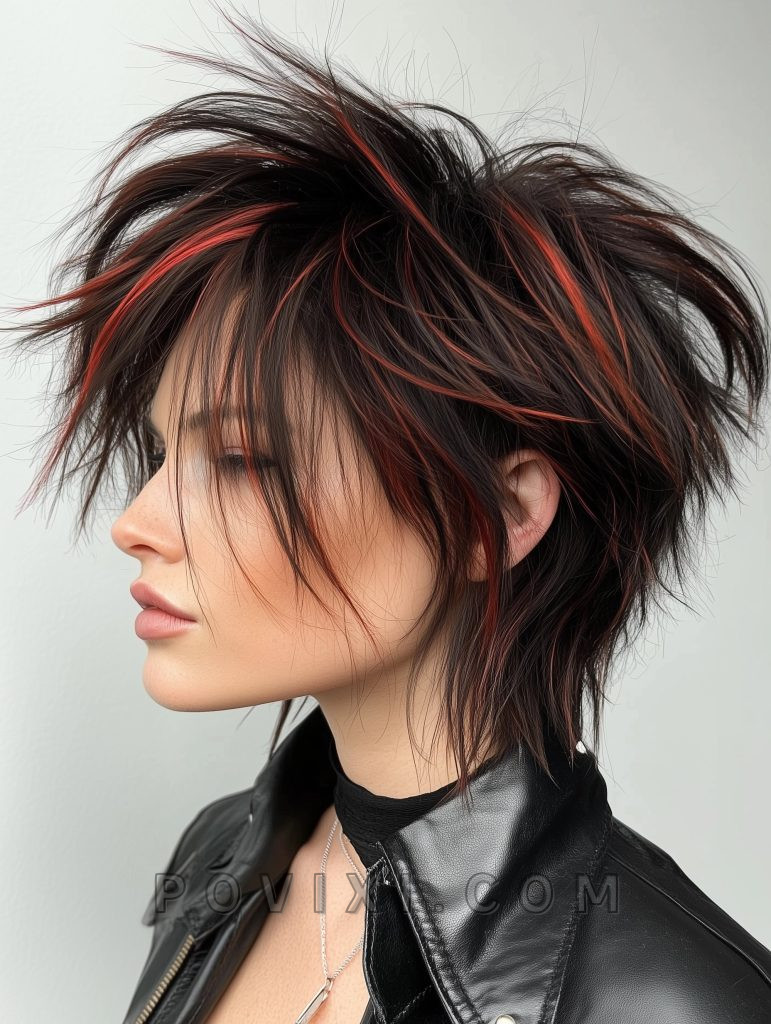 For a bold and daring look, try the short edgy octopus haircut with an undercut. This style features short, choppy layers on top with a shaved undercut beneath, giving it a rebellious and trendy vibe. Best suited for oval and diamond-shaped faces, this cut adds intensity to dark or blue eyes. It’s a great choice for those who want to express their unique personality and love experimenting with new looks.