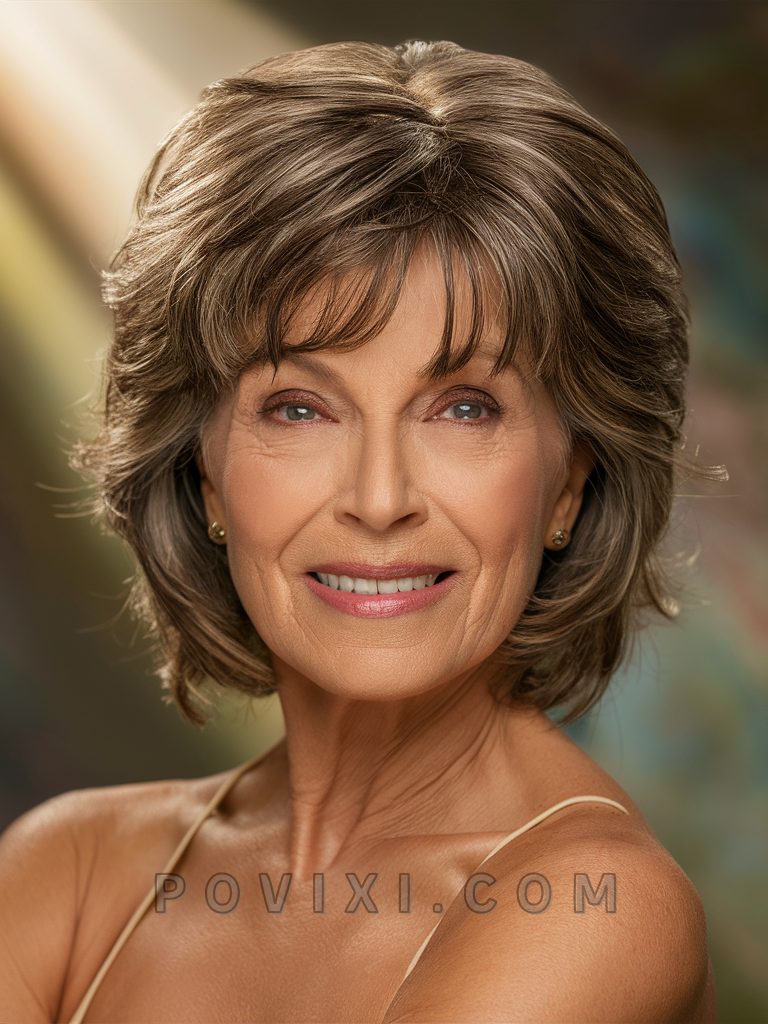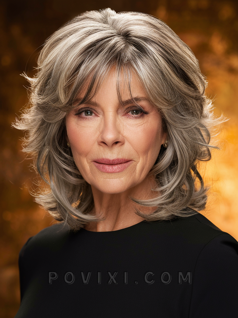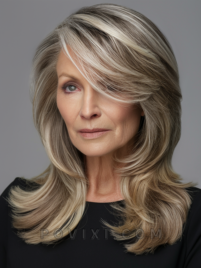 Long hair with feathered layers is a soft and elegant style that adds texture and movement without sacrificing length. This hairstyle is perfect for older women who want a fifty not frumpy look that is both modern and chic. The feathered layers create a light and airy feel, making it ideal for those with fine hair or thin hair. This style suits various face shapes, including oval face and round face, and can be easily adapted for casual or formal occasions.