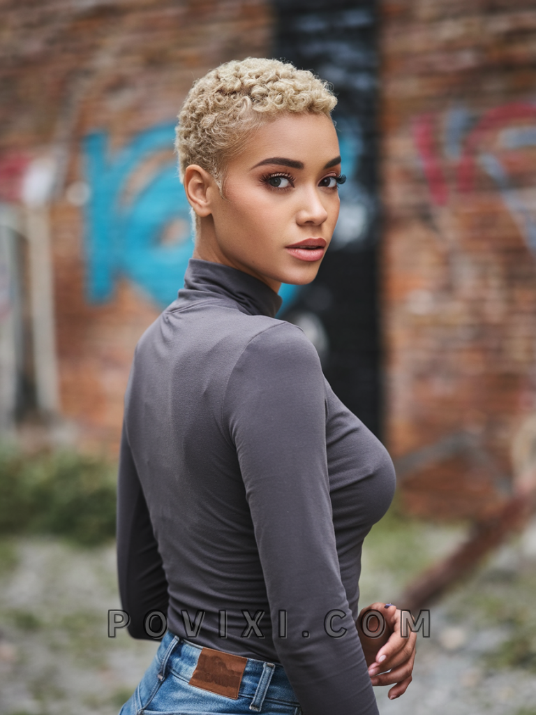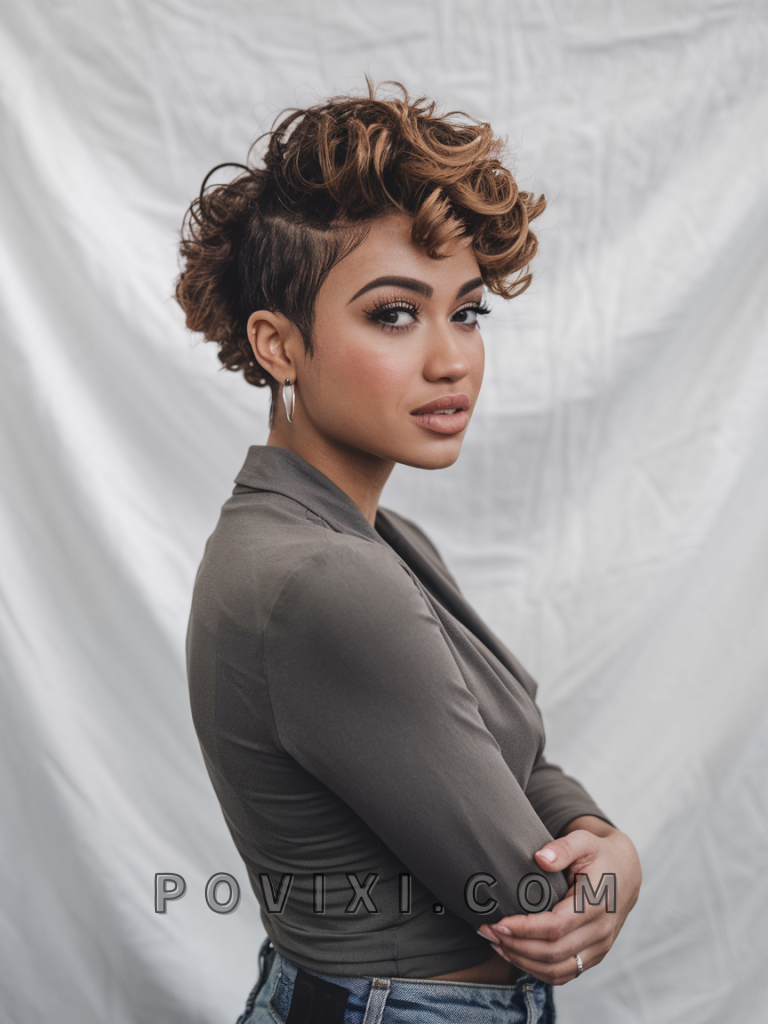 The pixie curls with undercut is a bold, modern choice for those who love combining texture with edge. This style pairs soft, voluminous curls on top with a sleek undercut for contrast. Perfect for round faces, it adds height and elongates the appearance of the face, making it a flattering option. This look works beautifully for masc women and can be tailored with vibrant hues or natural tones to suit your personality. It’s ideal for music festivals, casual hangouts, or any setting where you want to stand out.