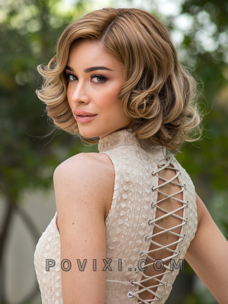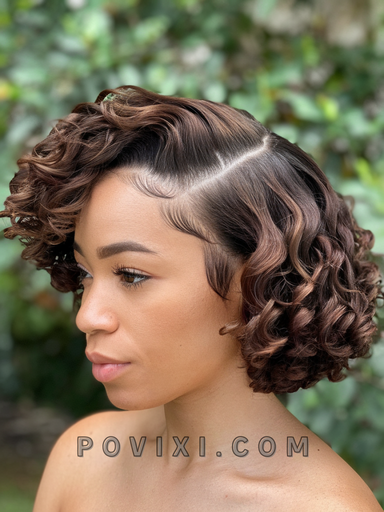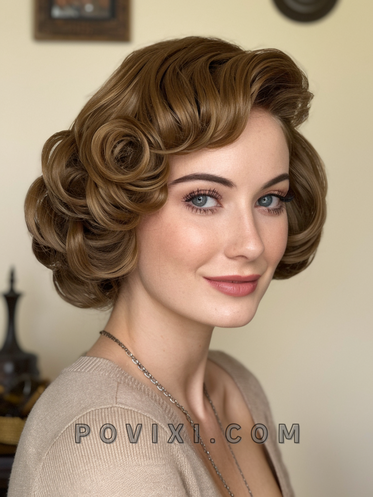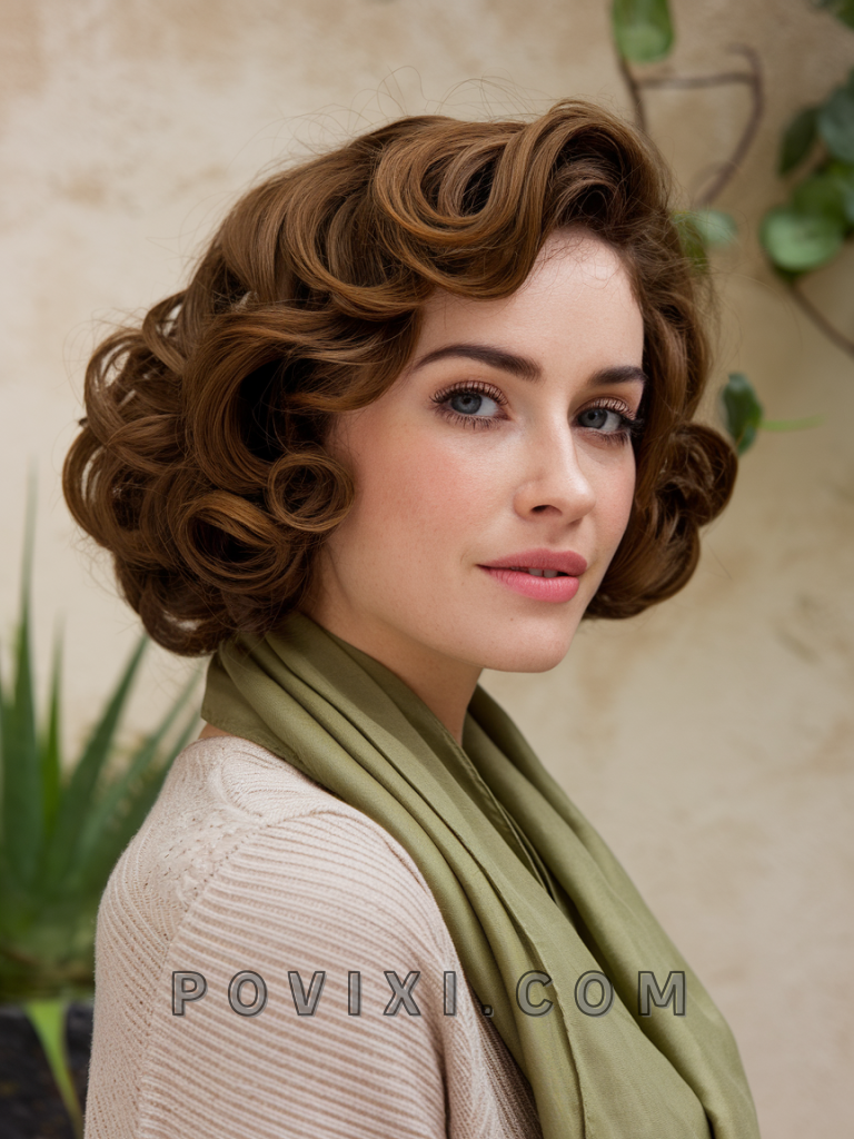 The vintage finger waves bring a retro flair to short curly haircuts. This elegant style works wonderfully for formal occasions like weddings or red carpet events. It’s especially flattering for women with round faces, as the waves create soft lines that balance facial features.