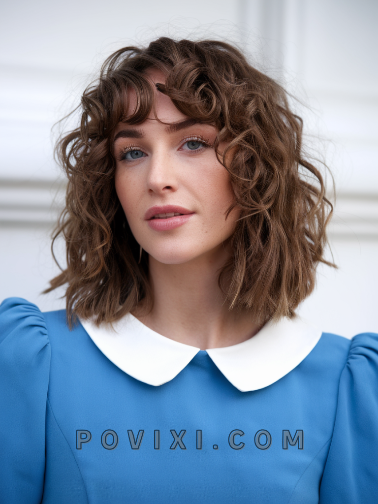 For women with thin hair, this style focuses on volume and dimension. The layered bangs add depth, while the curls create the illusion of thickness. It’s an excellent choice for round chubby faces or those with petite features. Whether you’re headed to a family dinner or a business meeting, this cut adds sophistication.