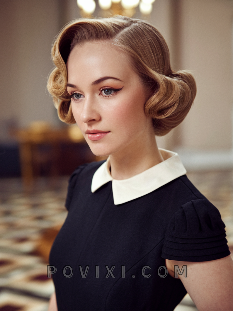 Create this look by finger-waving damp hair with a styling gel, and let it air dry or use a low-heat setting. Regular gloss treatments enhance shine, while a light pomade maintains the retro shape.