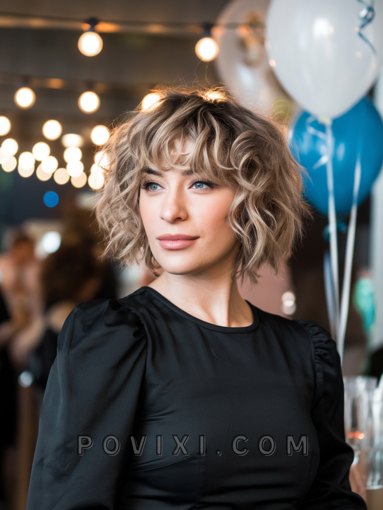 For women with thin hair, this style focuses on volume and dimension. The layered bangs add depth, while the curls create the illusion of thickness. It’s an excellent choice for round chubby faces or those with petite features. Whether you’re headed to a family dinner or a business meeting, this cut adds sophistication.