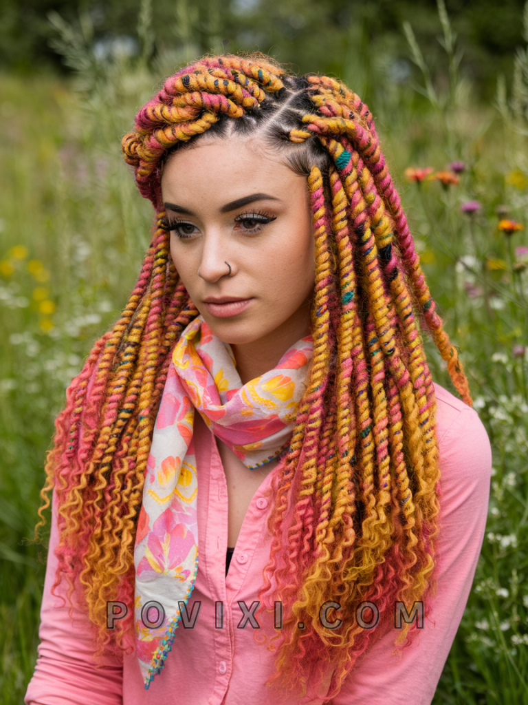 Add a pop of color to your spring twists by incorporating highlights. This vibrant style is great for festivals, parties, or vacations. It flatters all face shapes and brings out warm eye colors like amber or hazel.