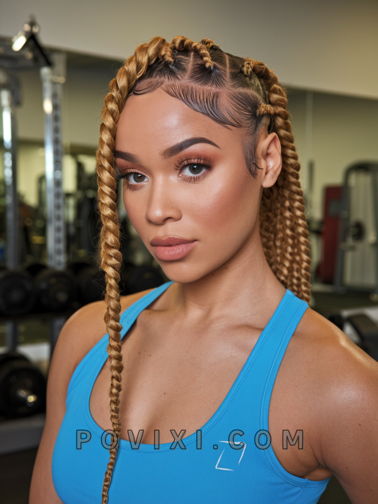 Spring twist cornrows are sleek and trendy, ideal for those seeking a low-maintenance yet stylish look. This design is great for outdoor activities or a polished professional appearance. The sleek finish suits oval and diamond face shapes while emphasizing bold makeup looks.