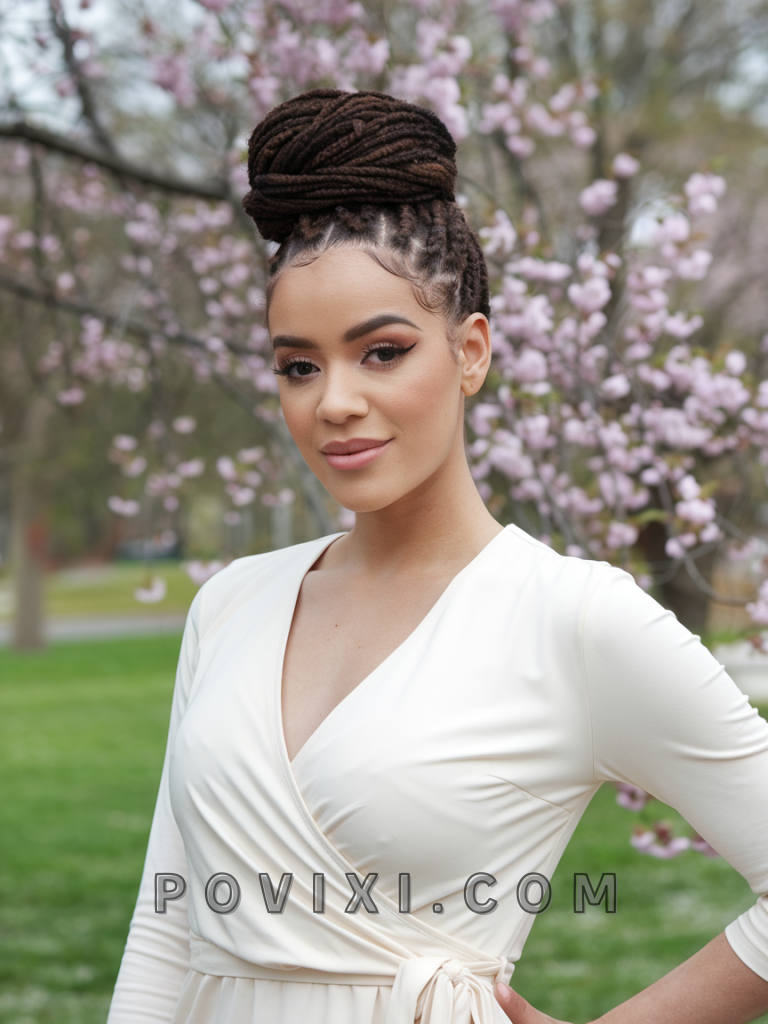 Elevate your look with a spring twist updo that incorporates dreads for a bold statement. This style is perfect for galas or red carpet events, offering height and drama. It pairs beautifully with diamond face shapes and smoky eye makeup.