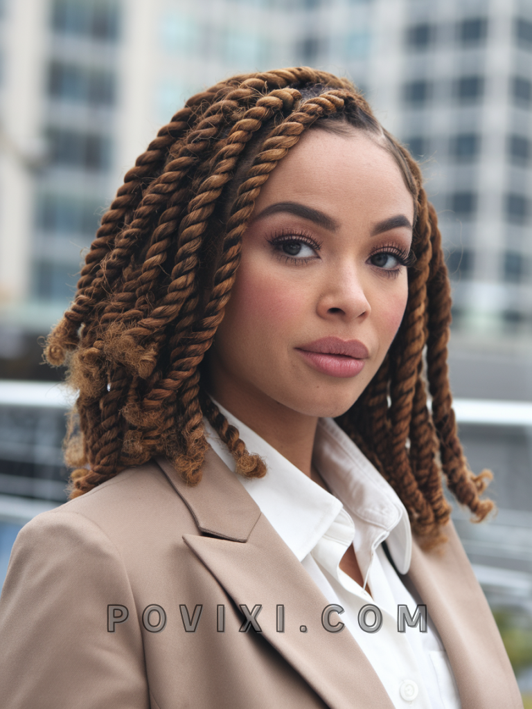 To achieve this style, cut the twists into layers, creating a voluminous look that frames the face. Use mousse to define the layers and wrap the twists with a silk scarf at night to maintain their shape.