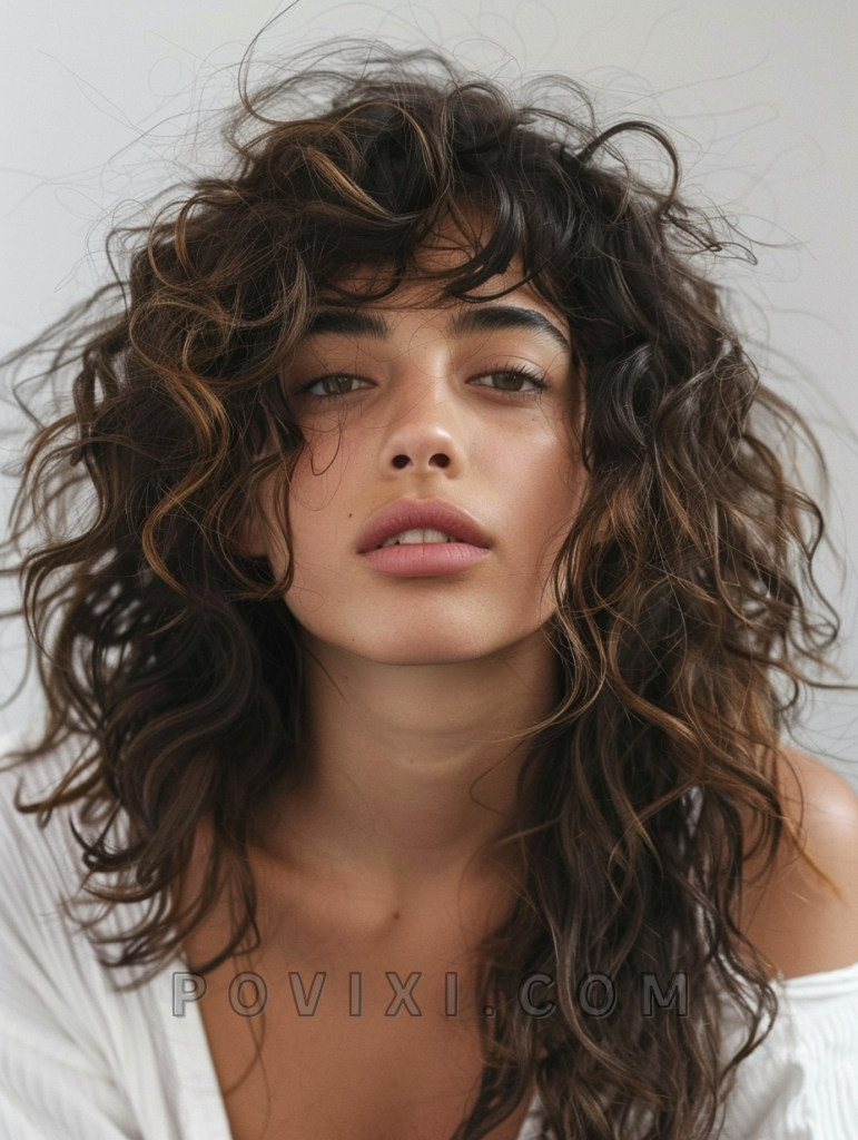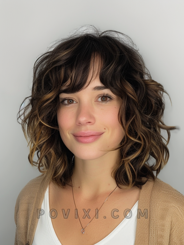Curly hair can be beautifully enhanced with bold highlights. Opt for blonde or caramel short streaks to bring out the curls’ texture.