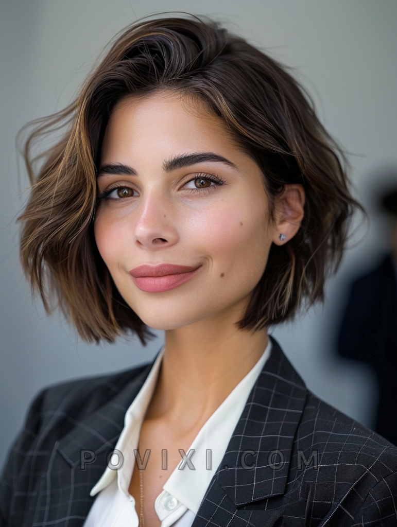 For those in professional settings, ashy balayage on a short bob offers a chic and sophisticated look. It’s understated yet stylish, providing a modern edge to your business attire.