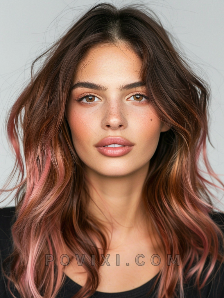 Rose gold balayage adds a touch of romance and is particularly flattering for those with pale skin. This soft, metallic shade is versatile, suitable for both curly and straight textures, and shines beautifully in both light and shadow.