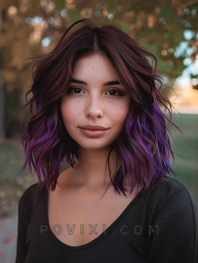 Blend smoky lavender tones into your dark brown base for a subtle yet enchanting look. This style is perfect for those who prefer a unique, understated color that complements a creative or artistic personality.