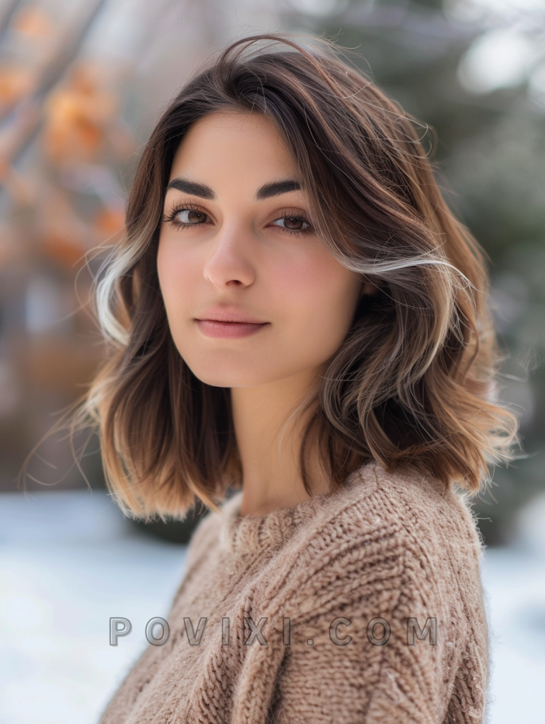 For a cooler palette, icy ash highlights can offer a striking contrast against dark brown hair. This look is best for straight or wavy hair and is an excellent choice for winter, giving an icy, chic vibe that’s hard to miss.