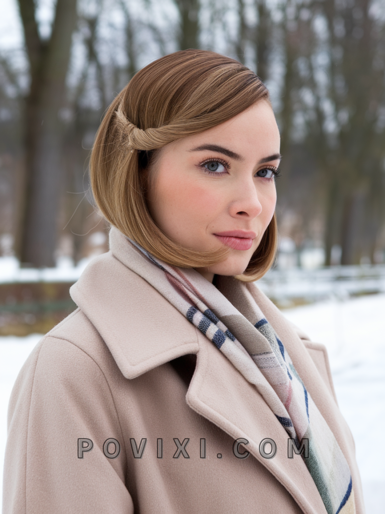 The short bob with blunt bangs is a chic and modern hairstyle for 2025. It offers a sharp, clean look that’s perfect for those who want a more polished winter style. The bangs create a bold contrast with the short bob, making it ideal for professional settings or sleek, minimalist winter outfit pairings. This style works best for heart-shaped or square faces, as the blunt bangs help soften the angles of the face.